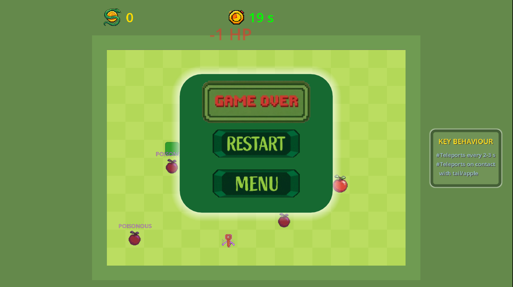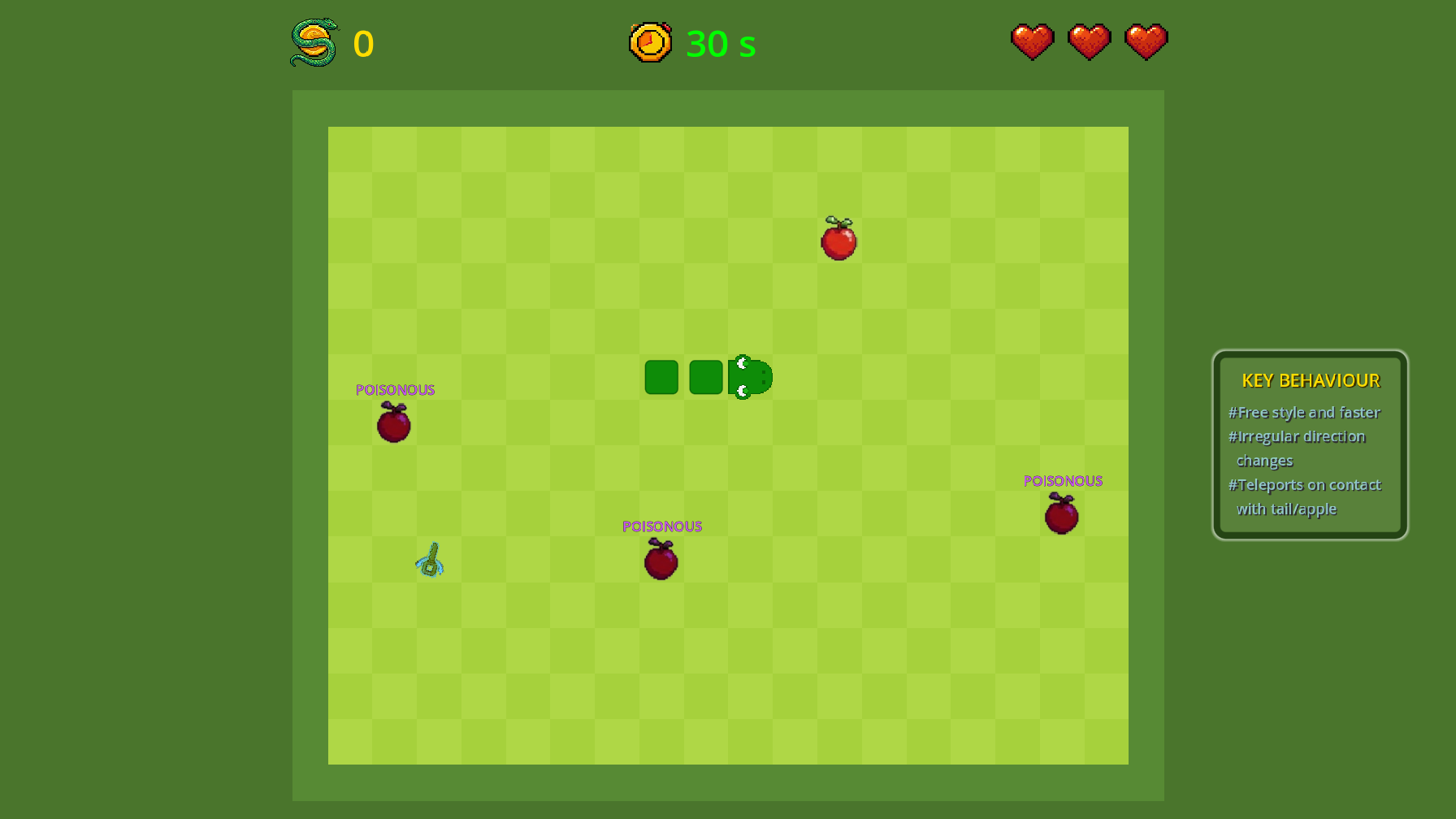 - Avoid: Poison apples 💀 and your own tail!